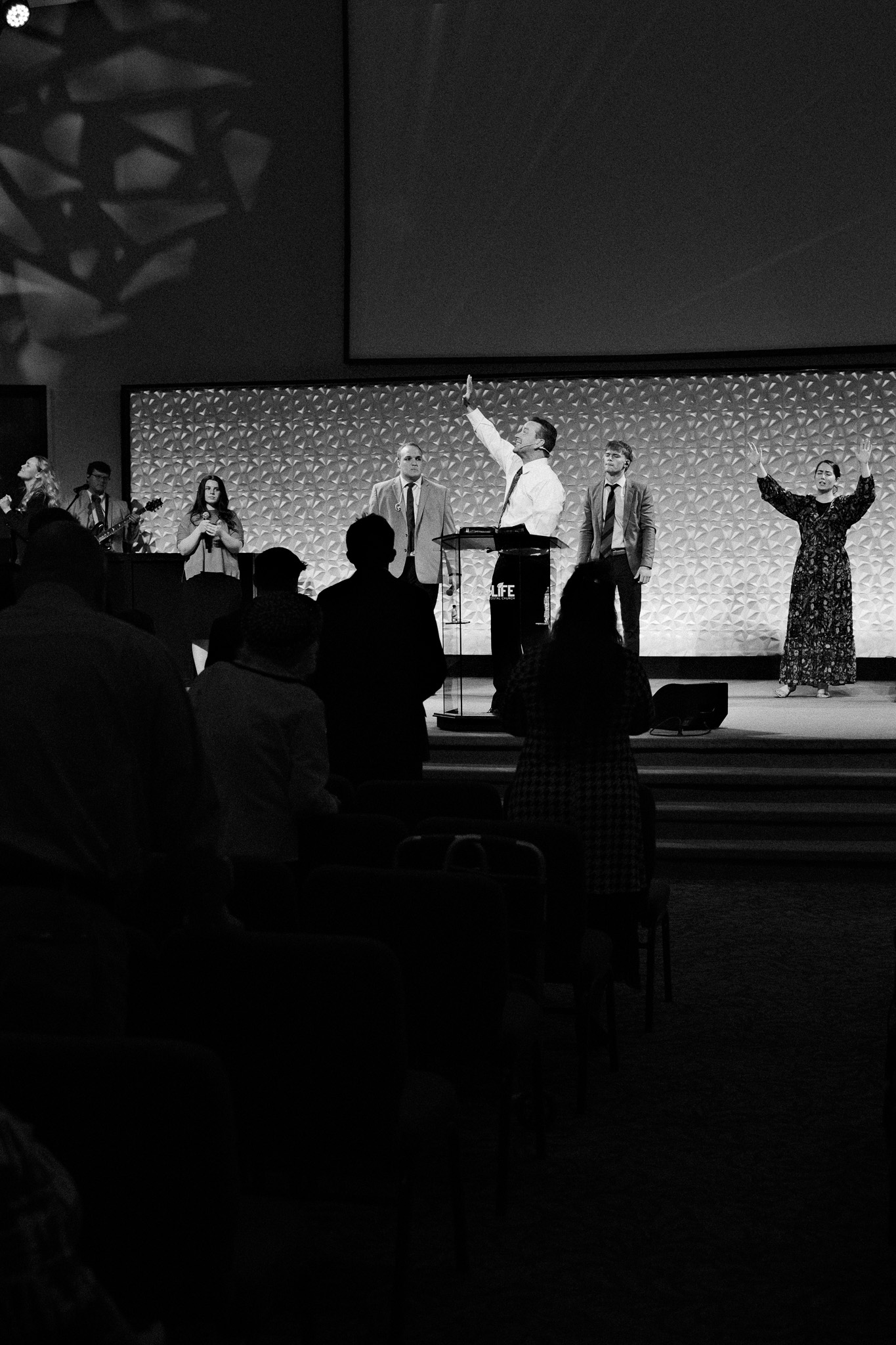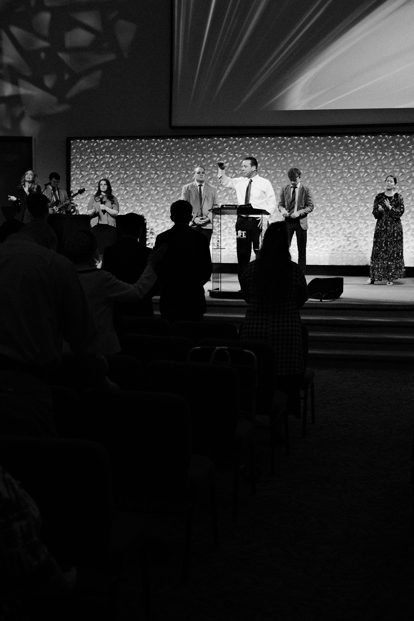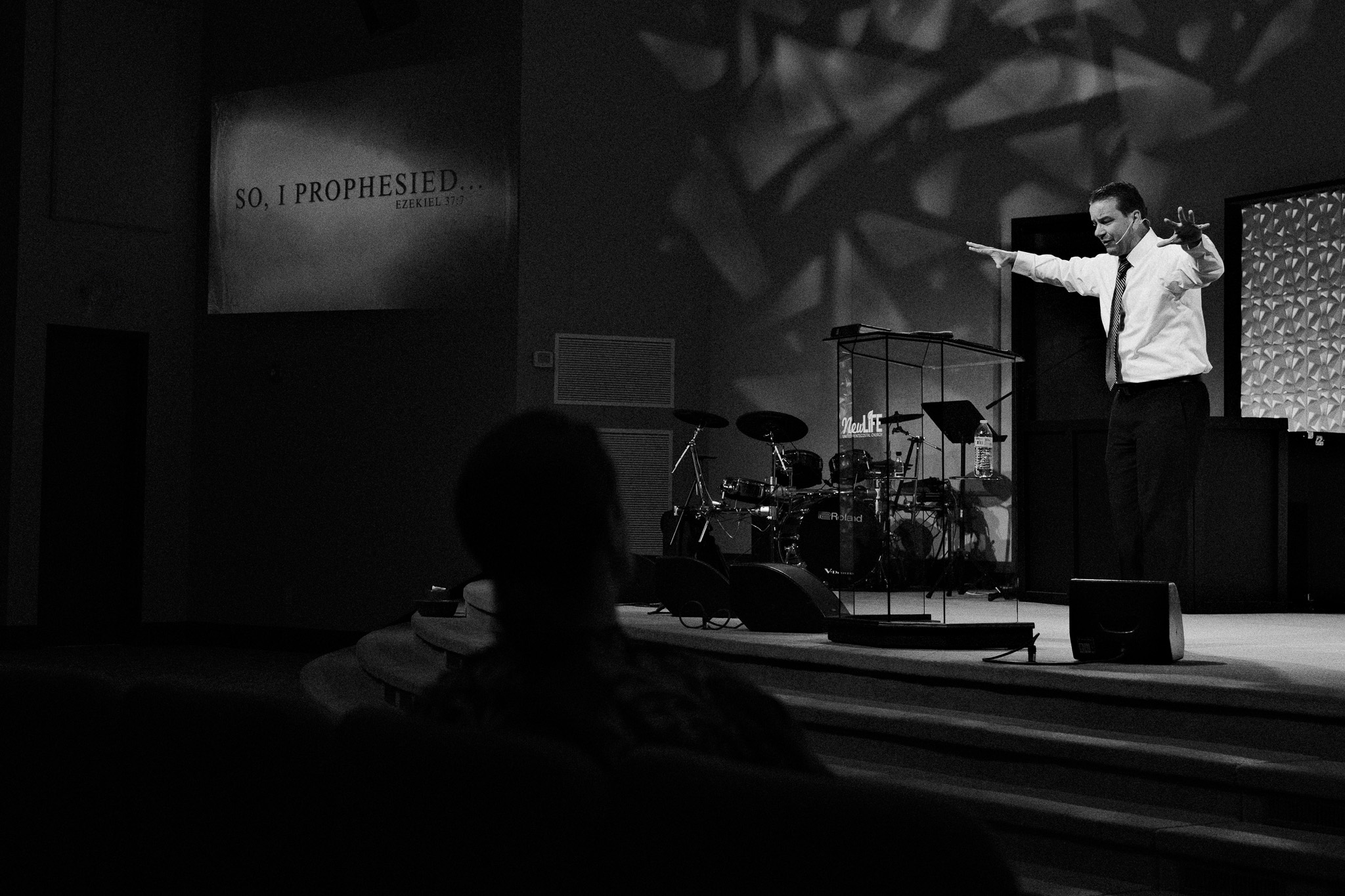 I am enjoying shooting B/W on my X-T5 with the 33mm 1.4f lens. With Pastor wearing a white shirt it pops on the image to draw attention to it.